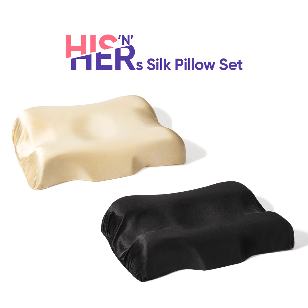 His'n'Hers - 2 Pillows Set with Silk Pillowcases on